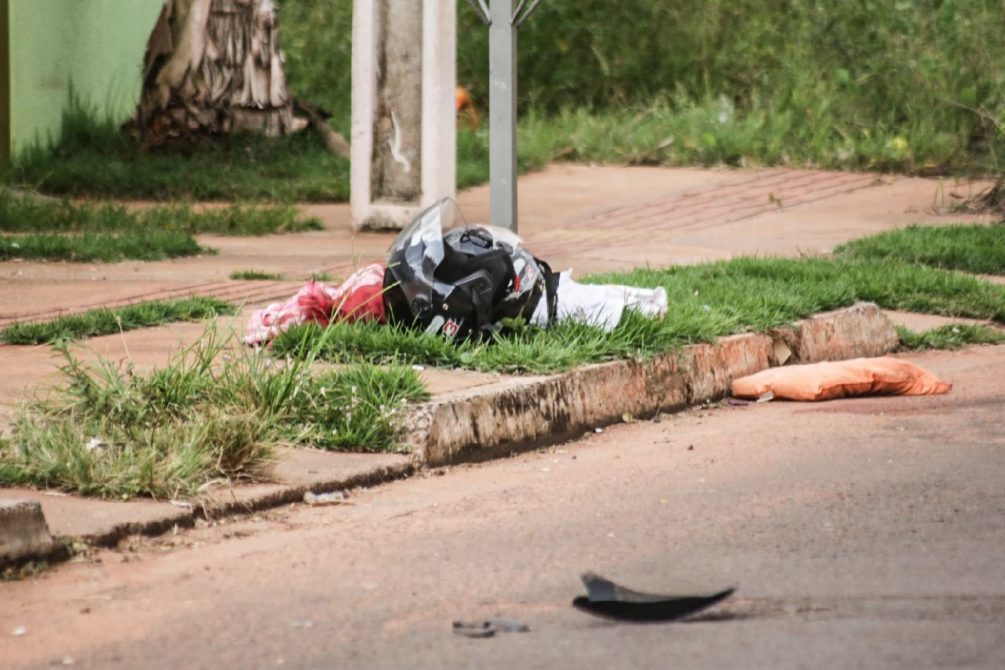 Ao colidir contra o Ford Fiesta, o motociclista também bateu em um VW Gol que estava estacionado na via. Com o impacto da batida, a adolescente foi arremessada por alguns metros e o capacete acabou saindo da cabeça da menor.