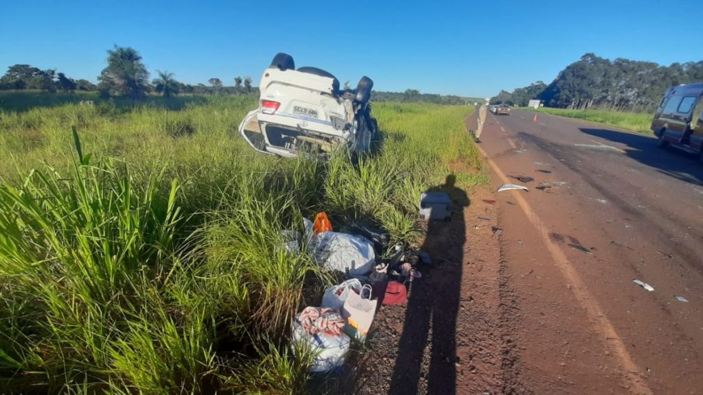 Depois da troca e quando estavam saindo do acostamento para retornar à estrada, a camionete acabou atingida na traseira pelo Ford Ka. Com a batida, o Ka foi parar do outro lado da pista e a camionete capotou. No Ford Ka, dois passageiros morreram e informações dos bombeiros são de que um deles estava sem cinto de segurança. Sobre a questão do sol ter atrapalhado a visão, o militar dos bombeiros disse ao Midiamax que é muito possível que tenha ocorrido.