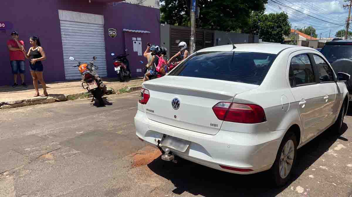 Motociclista atingiu parte traseira do veículo Voyage – Foto: Evelin Cáceres / Midiamax