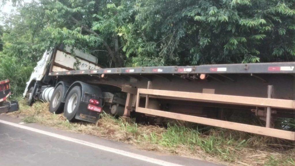 Para evitar uma colisão frontal, na tarde desta sexta-feira (10), um motorista precisou jogar a carreta que conduzia para às margens da rodovia MS-276, entre Batayporã e Anaurilândia