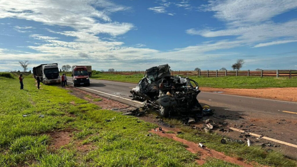 O acidente aconteceu por volta das 7 horas, no km-200 da rodovia, quando a Ford Ranger bateu na traseira de um caminhão boiadeiro.