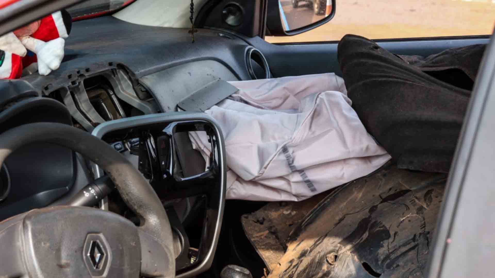 Com isso, ele bateu no poste, que ficou pendurado, puxando os fios e deixando um semáforo desligado. Com o impacto da batida, o volante do carro afundou e a suspeita é que o motorista estivesse sem cinto de segurança.