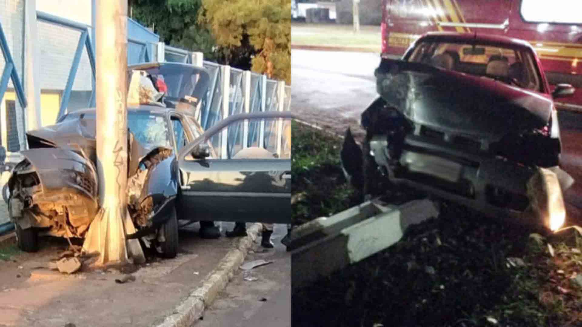 Na madrugada de sábado (16), um motorista perdeu o controle da direção e bateu o carro em um poste, próximo ao Hospital Universitário, entre as avenidas Fábio Zahran e Manoel da Costa Lima, na Vila Ipiranga.