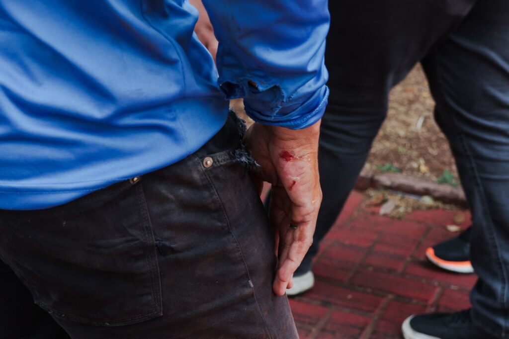 O pedestre caiu e ficou desacordado. Uma médica que passava na região realizou os primeiros socorros até a chegada do Corpo de Bombeiros. Ele recobrou a consciência e foi constatado um corte no supercílio.