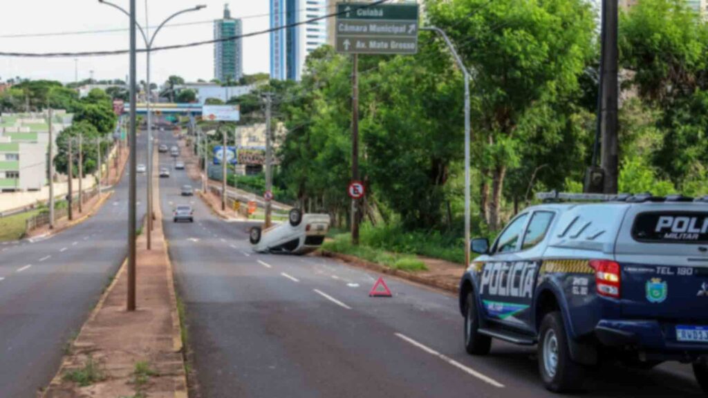 Foto: Capotamento aconteceu na Avenida Ceará (Nathalia Alcântara, Midiamax)