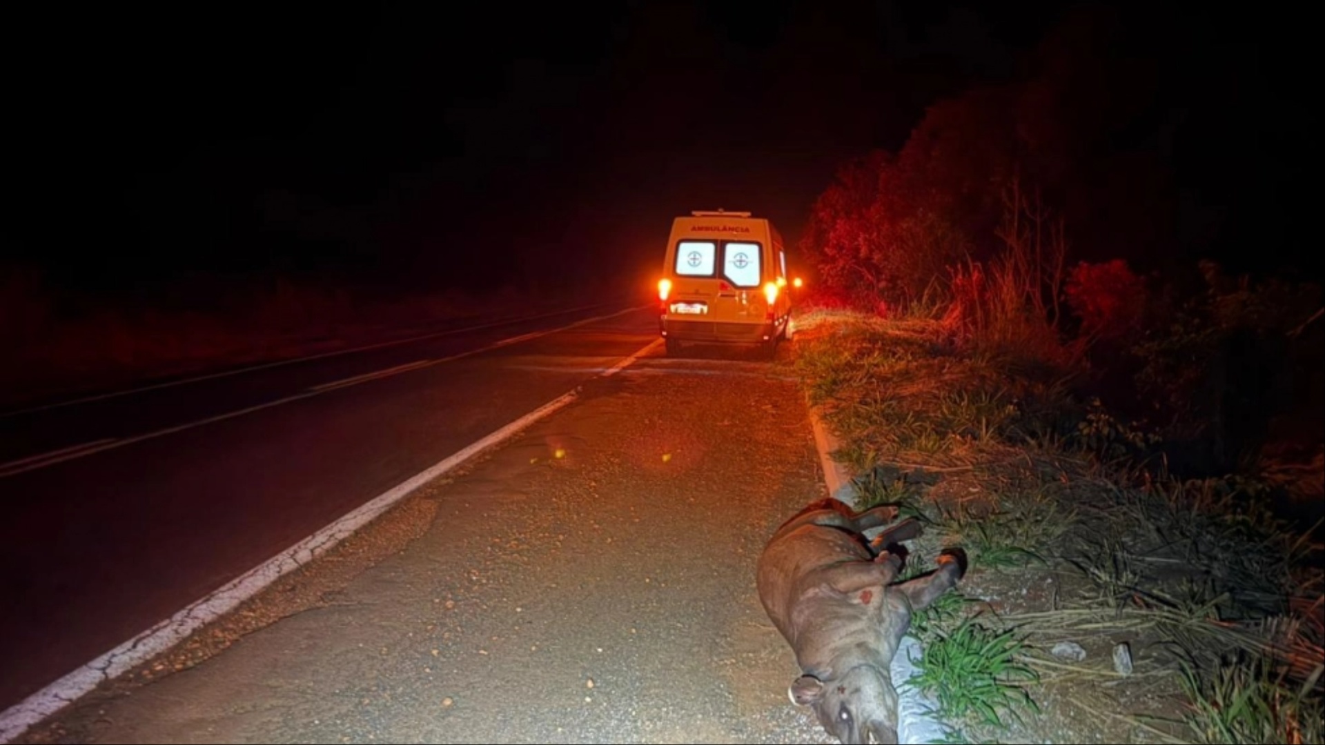 A ambulância atingiu uma anta na pista. O animal morreu com o atropelamento. O veículo retornava para o distrito e, além do motorista, viajavam uma criança que havia recebido alta médica e a mãe.