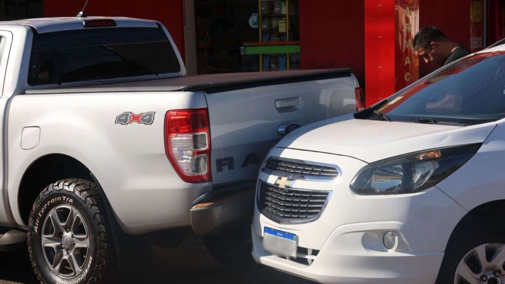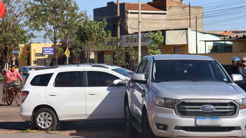 Uma caminhonete Ranger atingiu um carro Chevrolet Spin ao realizar uma manobra de ré em um cruzamento no Jardim Tijuca, em Campo Grande, no início da manhã desta quarta-feira (22).