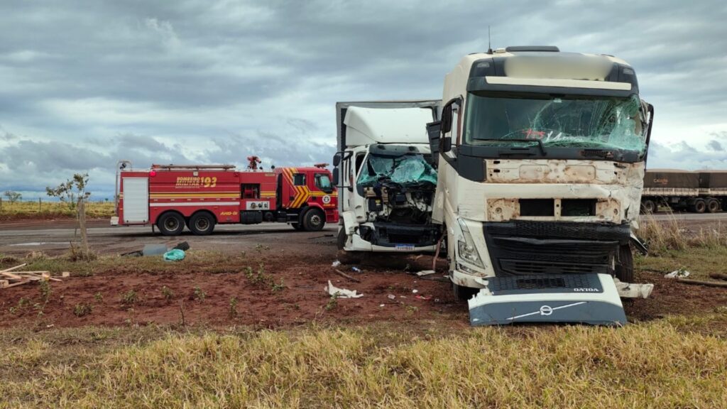 A frente do caminhão baú foi atingida pela lateral da carreta. Diante da situação, o caminhoneiro ficou preso nas ferragens. O Corpo de Bombeiros de Santa Rita do Pardo foi acionado e realizou a remoção dele.