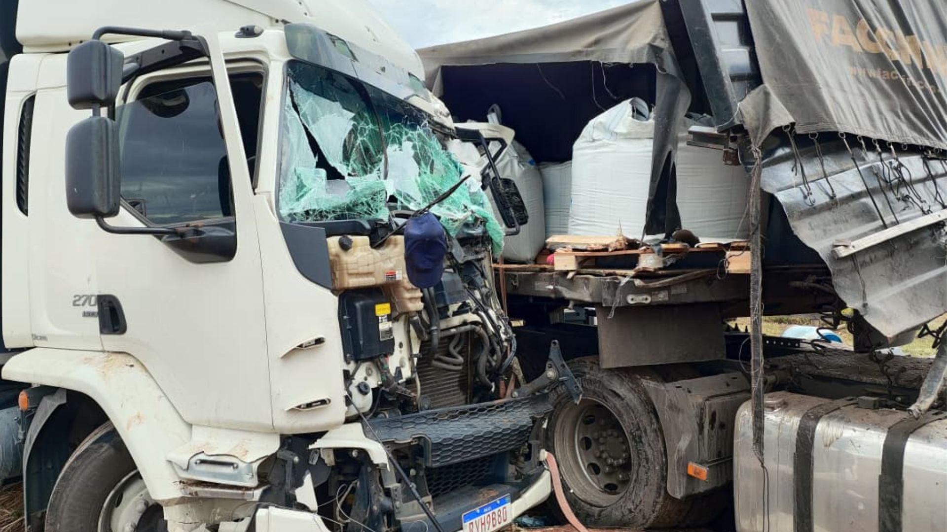 A frente do caminhão baú foi atingida pela lateral da carreta. Diante da situação, o caminhoneiro ficou preso nas ferragens. O Corpo de Bombeiros de Santa Rita do Pardo foi acionado e realizou a remoção dele.