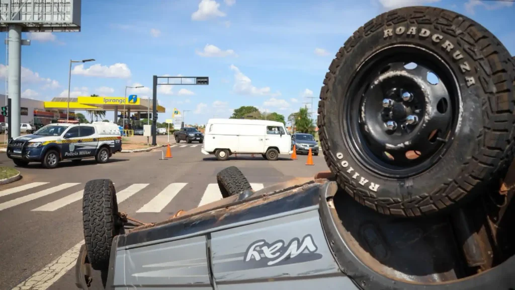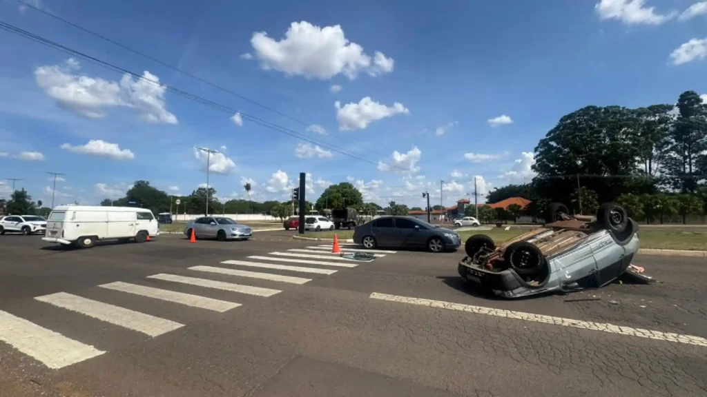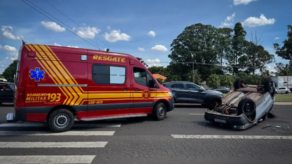 Um acidente envolvendo uma VW Kombi e um Fiat Uno Way deixa o trânsito lento no cruzamento da Rua Itatiaia com a Avenida Duque de Caxias, na região oeste de Campo Grande, na tarde desta quarta-feira (15). Apesar do impacto e do capotamento de um dos veículos, ninguém ficou ferido.