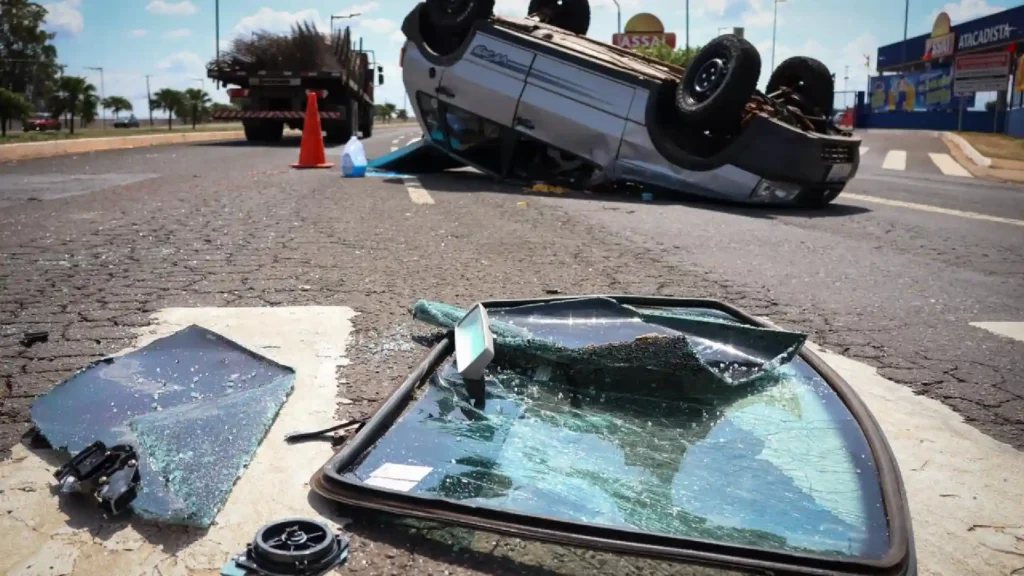 Nesse momento, segundo sua versão, foi atingido por uma Kombi que seguia pela Duque de Caxias, no sentido Centro–bairro. Com o impacto, o Uno capotou e parou tombado de lado na via.