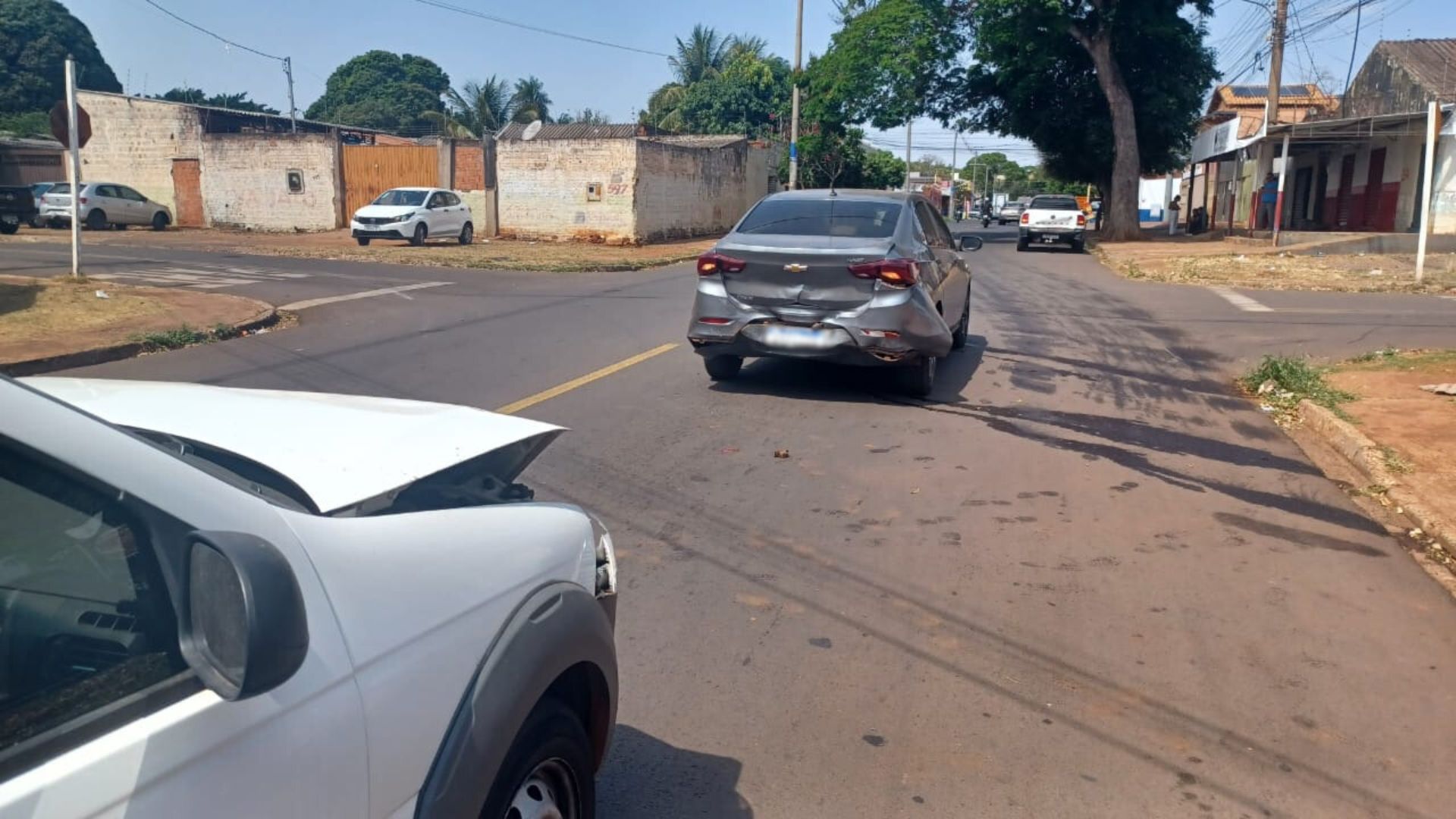 Três carros se envolveram em um acidente, na Rua Bom Sucesso, esquina com Rua dos Andes, no bairro Marcos Roberto, em Campo Grande. A batida foi ocasionada após dois veículos diminuírem a velocidade, por conta do fluxo intenso de veículos, no início da tarde desta sexta-feira (12).