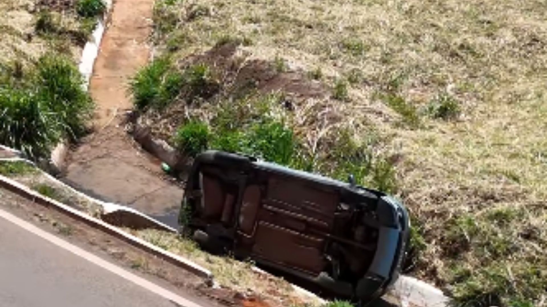 Um veículo Siena tombou às margens da rodovia, na BR-163, saída para São Paulo, em Campo Grande. O acidente aconteceu nesta quarta-feira (17).