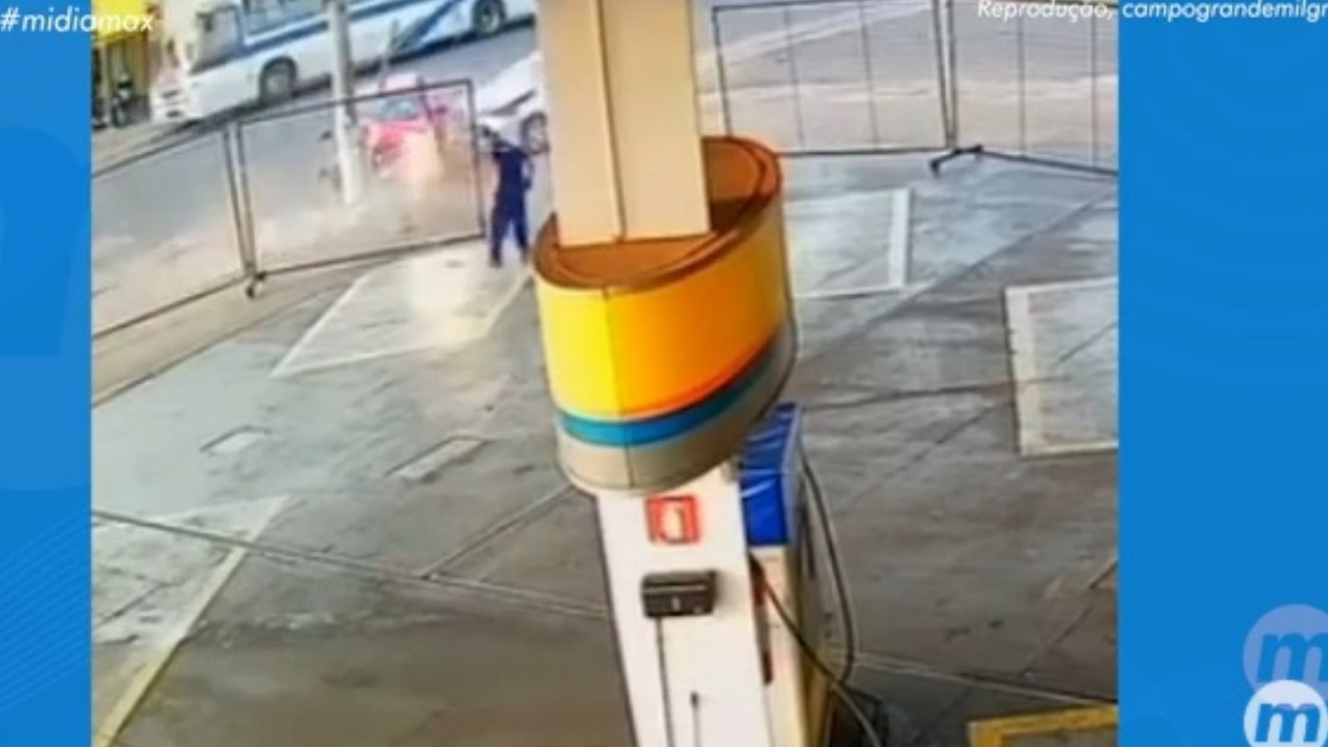 Pelas imagens divulgadas pelo Campo Grande Mil Grau, é possível ver quando o frentista que está retirando a proteção do posto chega a dar um pulo para trás, ao notar os carros, em alta velocidade, seguindo e colidindo um contra o outro.
