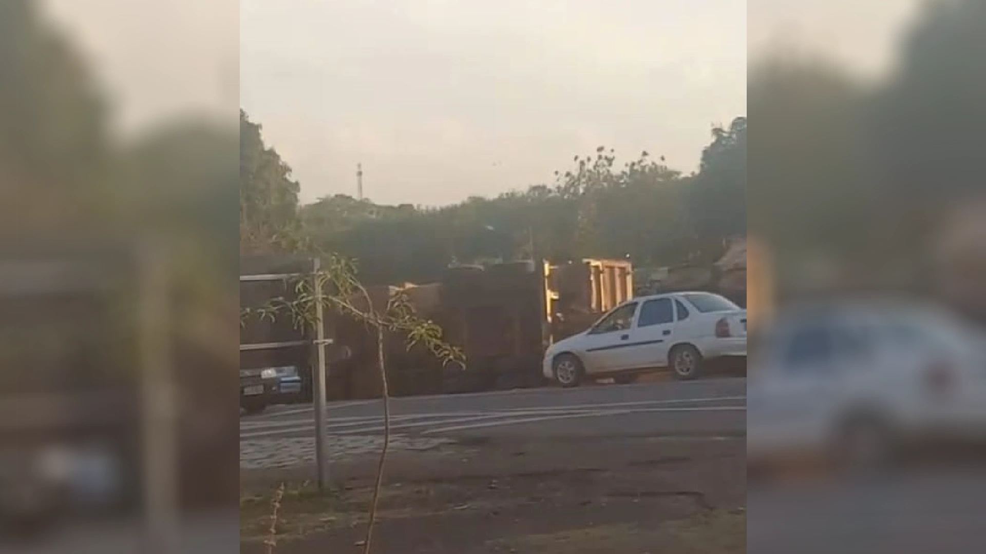 Um tombamento de carreta foi registrado na tarde desta quarta-feira (17), no km 487 da rodovia BR-163, no trecho do Anel Rodoviário de Campo Grande.