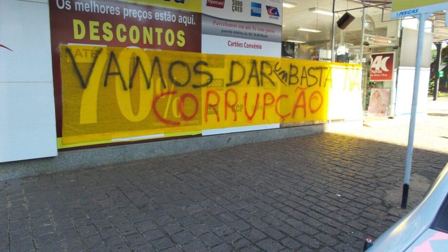 No centro da cidade faixas como, ‘Queremos um Brasil melhor’ e ‘Vamos dar um basta na corrupção’, foram afixadas em apoio ao movimento, na Afonso Pena com a Rua Rui Barbosa. O Banco do Brasil, entre a Rua 13 de maio com a Avenida Afonso Pena, também foi coberto por tapumes.