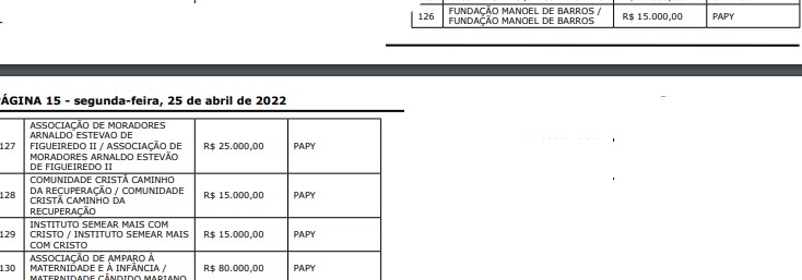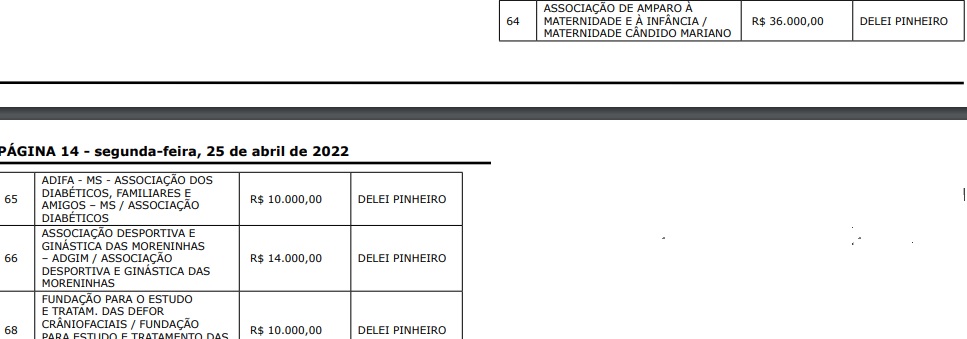 As emendas parlamentares em 2022, previstas pelo FIS (Fundo de Investimentos Sociais), tiveram os valores publicados no Diogrande desta segunda-feira (25).