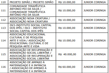 Cada um dos parlamentares tem direito a R$ 300 mil para destinar às entidades de saúde, assistência social e, novidade neste ano, esporte, lazer e cultura.