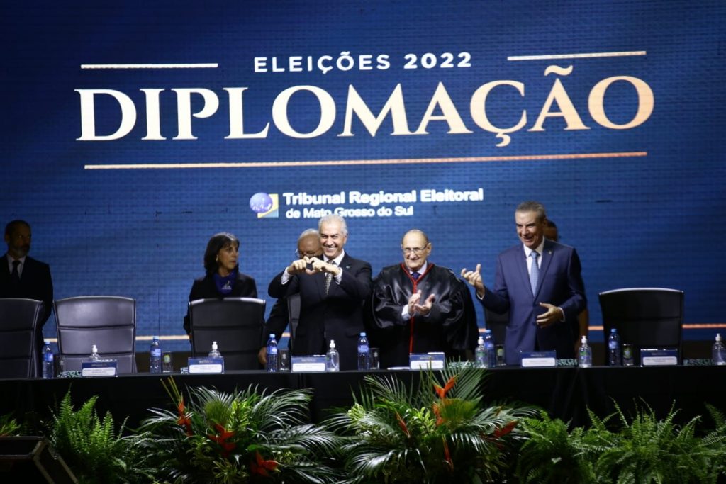 Os parlamentares, governador eleito e vice em 2022 foram diplomados pelo TRE-MS (Tribunal Regional Eleitoral de Mato Grosso do Sul) nesta segunda-feira (19). O evento aconteceu no Ondara Palace e foi transmitido ao vivo pelo Facebook do Jornal Midiamax (confira abaixo).