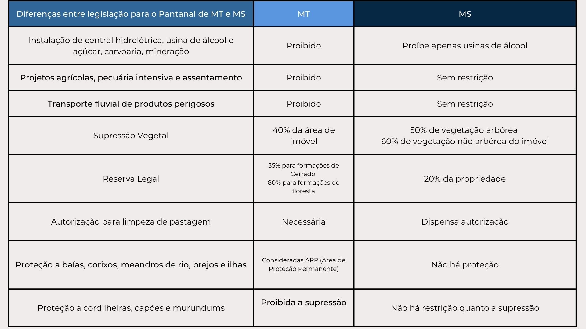 Outra incongruência, ainda de acordo com o promotor, é o fato do Pantanal estar no Mato Grosso e no Mato Grosso do Sul e não ter uma legislação federal unificada.