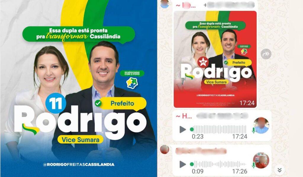 O candidato do Progressistas na cidade de Cassilândia, cidade a 437 km de Campo Grande, Rodrigo Barbosa de Freitas, procurou a delegacia de Polícia Civil da cidade para denunciar mensagens veiculadas em grupos de redes sociais na cidade com imagem de santinhos alterados. O político relata que as cores usadas nas publicações foram alteradas e podem influenciar eleitor.