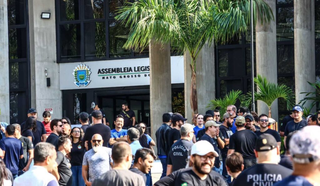 Com indicativo de paralisação do trabalho na próxima semana, os policiais civis realizaram manifestação na Alems (Assembleia Legislativa de Mato Grosso do Sul) na manhã desta quinta-feira (29). O Sinpol-MS (Sindicato dos Policiais Civis do Mato Grosso do Sul) pede a criação de uma comissão especial no parlamento para que deputados realizam a intermediação da negociação salarial com o Governo do Estado. Objetivo da categoria é chegar ao 6º salário, e para isso precisa de um aumento de 30%.