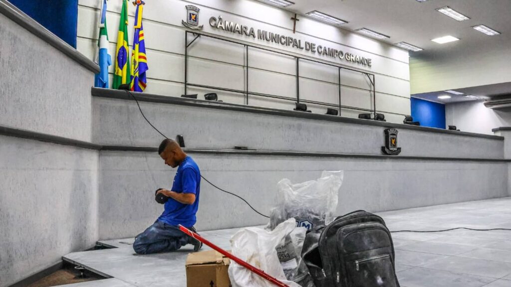 Durante o recesso que começou no dia 19 de dezembro, o plenário da Casa de Leis tem passado por uma reforma. A Câmara está ‘correndo contra o tempo’ para começar o ano com um painel de votação semelhante ao da Alems (Assembleia Legislativa de Mato Grosso do Sul).