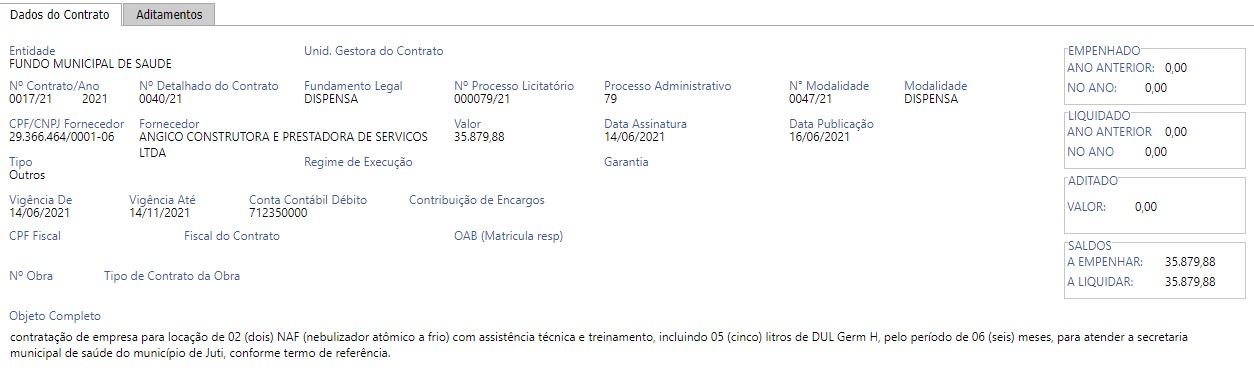 Já o contrato da prefeitura de Juti com a Angico previa o pagamento de R$ 5,9 mil por mês pelo aluguel de apenas dois equipamentos.
