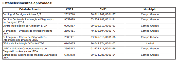 O governo do Estado publicou nesta quarta-feira (2), em Diário Oficial, a aprovação do credenciamento de oito estabelecimentos médicos que prestarão serviço na Caravana da Saúde, programa do Governo para realização de exames e cirurgias eletivas. Das oito, sete são de Campo Grande e uma de Naviraí, no sul do Estado. Abaixo a lista de aprovados: