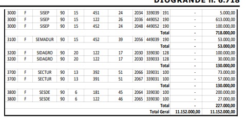 O valor destinado a cada entidade pode ser visto na quarta página do Diogrande desta quinta-feira. Veja abaixo o valor que foi encaminhado a cada secretaria:
