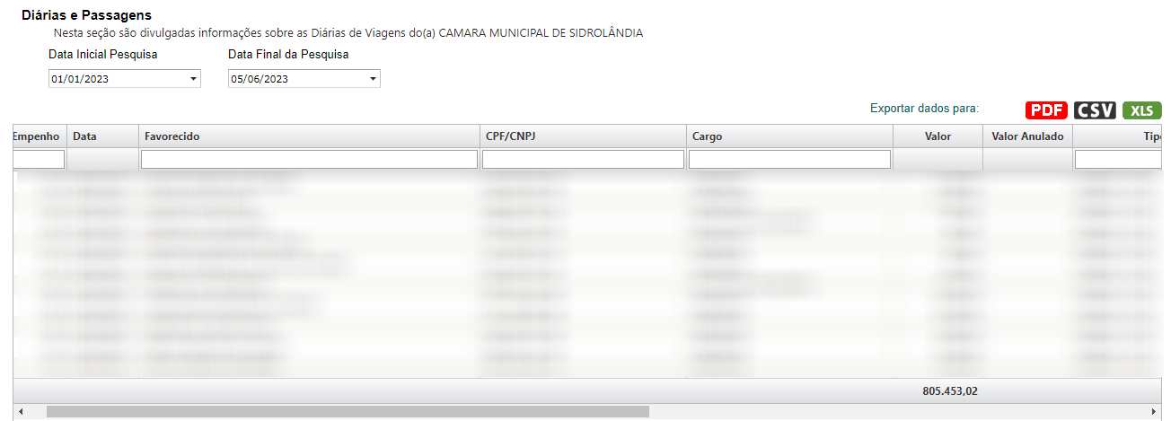 Dados do Portal da Transparência informam que, no período de 1º de janeiro a 5 de abril, o valor de diárias e passagens pagas pela Câmara Municipal de Sidrolândia totalizou R$ 487.480,92.