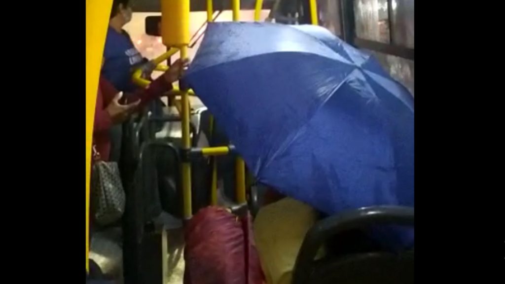 Alguns tiveram até que utilizar guarda-chuva dentro do coletivo por conta das goteiras.