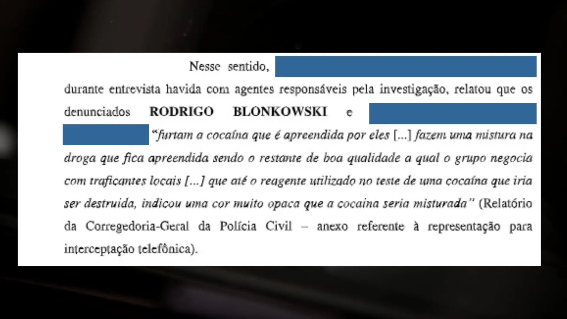 No acórdão, o relator detalha que Blonkowski é processado por tráfico de drogas, associação para o tráfico e violação do sigilo funcional. No entanto, a defesa questiona as provas da denúncia feita pelo Gaeco e afirma que sofre constrangimento ilegal pela inexistência de crime.