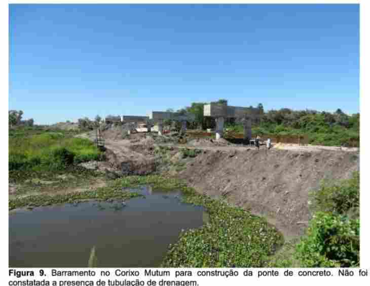 Isso porque há drenos, mas que só ‘funcionam’ em épocas de cheia. A intenção é de que a água possa fluir mesmo na estiagem, tanto no local próximo à confluência com o Rio Paraguai, quanto no local de construção da nova ponte de concreto.