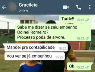 Conforme os autos, a conversa foi encontrada na análise de dados de nuvem de Ueverton, conhecido como Ueverton Frescura. Um print da conversa com Gracileia ligaria o suspeito à empresa Odinei Romeiro.