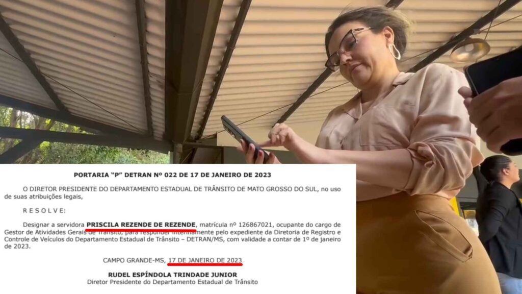 Peça importante no esquema, Yasmin Osório Cabral foi nomeada em 3 de fevereiro de 2023. Ela foi colocada no órgão e, através da influência dos padrinhos do esquema, acabou sendo transferida para a Cotra (Corregedoria de Trânsito do Detran-MS).