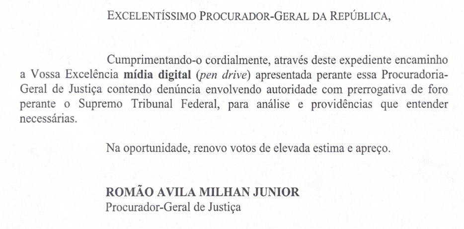 Ao Jornal Midiamax, o Ministério Público Federal confirmou, há menos de um mês, o recebimento do documento. “O ofício chegou, está na assessoria jurídica criminal STF/PGR, para análise”, informou a assessoria de comunicação em 25 de novembro.