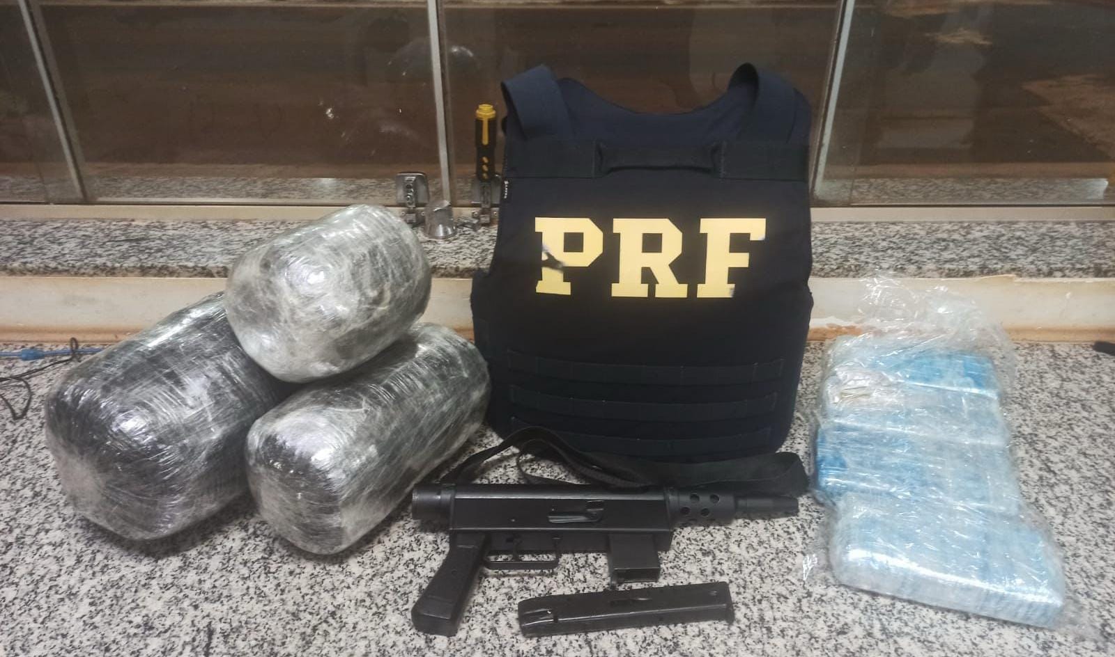 Na noite deste domingo (5), por volta das 19h, a Polícia Rodoviária Federal (PRF) apreendeu 4,15 kg de cocaína, 5,65 kg de haxixe e uma submetralhadora sueca calibre 9mm durante uma fiscalização de rotina em um ônibus que fazia a linha Ponta Porã a Campo Grande, na BR-463, em Ponta Porã, MS.