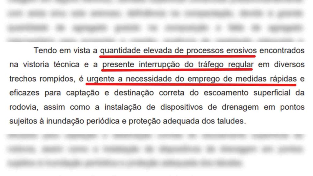 Assim, o relatório cobra medidas emergenciais por parte da Agesul (Agência Estadual de Empreendimentos de MS) para, ao menos, o local voltar a ficar trafegável.