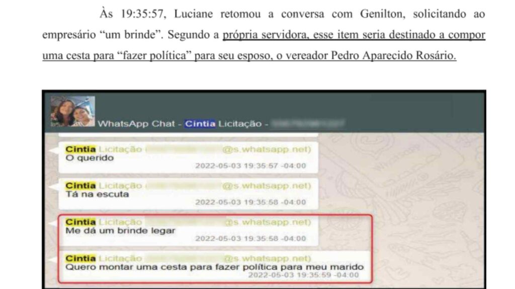 O vereador disse à reportagem que desconhece tais brindes solicitados pela esposa e disse confiar na inocência dela.