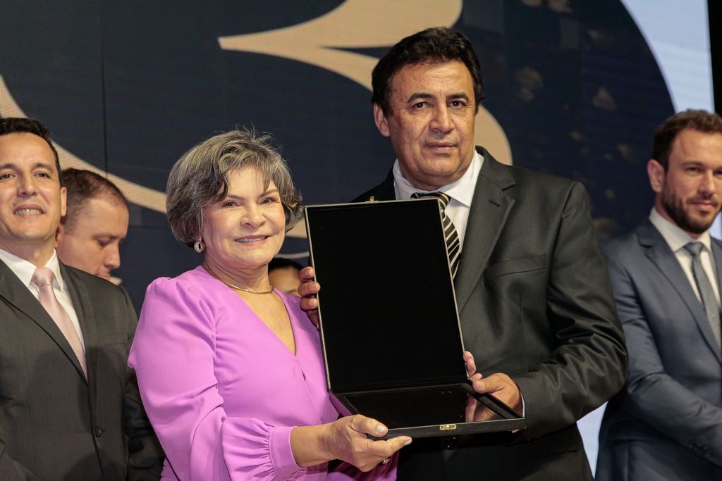 Divina Garcez Calil, fiscal tributária estadual, com 74 anos, foi homenageada no evento. Ela é uma das colaboradoras com mais tempo de serviço na ativa. Ela continua trabalhando no Posto Fiscal de