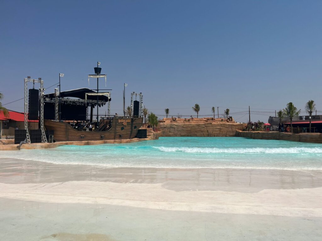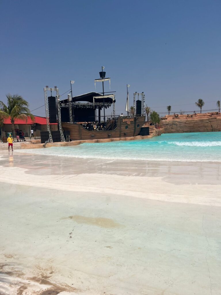 Ao todo, são sete mil metros quadrados, com ambientação tropical, areia de praia, bangalôs exclusivos, um navio palco e um novo bar molhado. Também tem um beach club, um restaurante climatizado e um rooftop, com vista para a piscina de ondas e aquele pôr do sol que todo mundo quer ver. Agora, o céu é o limite…