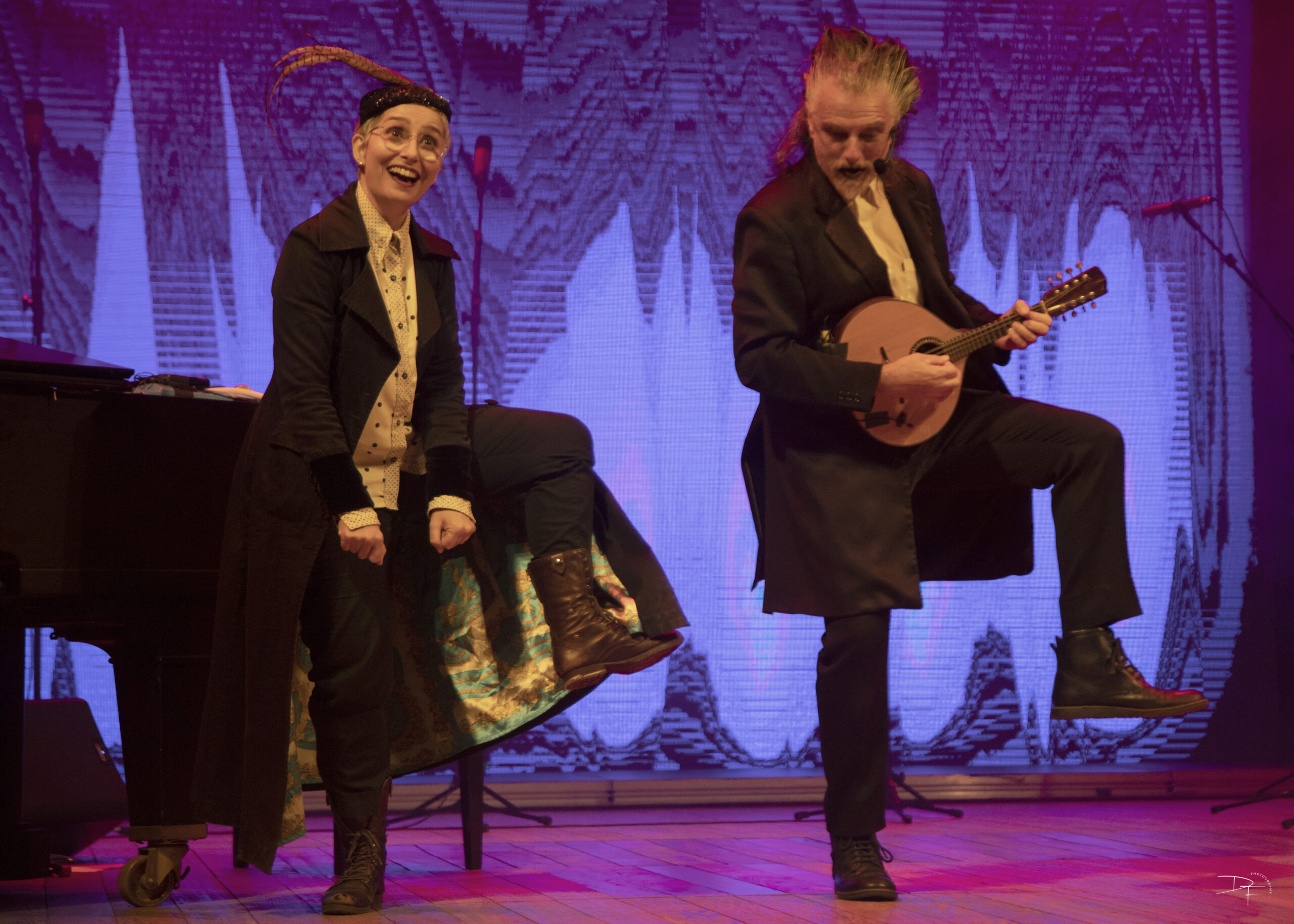 A montagem incorpora elementos audiovisuais, projeções de Rique Barbo, trilhas em som surround, coros locais de meninas colegiais e trechos do longa-metragem animado “Até que a Sbørnia nos Separe”. O elenco conta ainda com Hique Gomez (Kraunus Sang), Tales Melati (professor MenThales) e Gabriella Castro (Pierrot Lunaire), além das participações em vídeo do saudoso Nico Nicolaiewsky (Maestro Plestkaya).