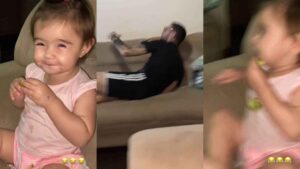 VÍDEO: Menina se assusta com grito do pai enquanto ele assiste jogo de futebol