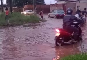 VÍDEO: chuva nesta terça alagou entrada do Bairro Los Angeles