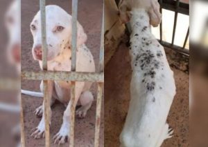 Dono de pitbull achado cheio de carrapatos diz que ‘estava providenciando’ tratamento ao animal