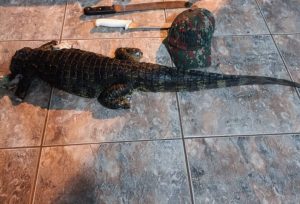 Motorista bêbado é flagrado com jacaré abatido após se envolver em acidente