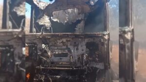 VÍDEO: Cabine de caminhão fica destruída após incêndio em Rio Verde