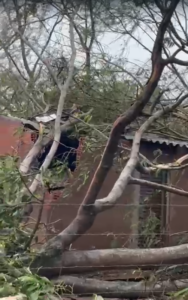 A estimativa é de mais de 300 pessoas impactadas com casas destelhadas e queda de paredes e árvores sobre imóveis, além de falta de energia