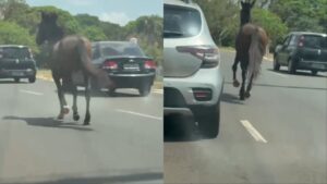 VÍDEO: Cavalo é flagrado correndo entre carros na Avenida Euler de Azevedo
